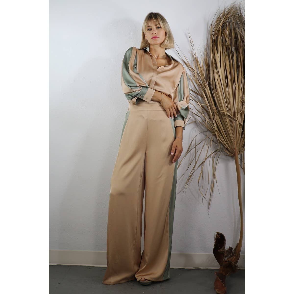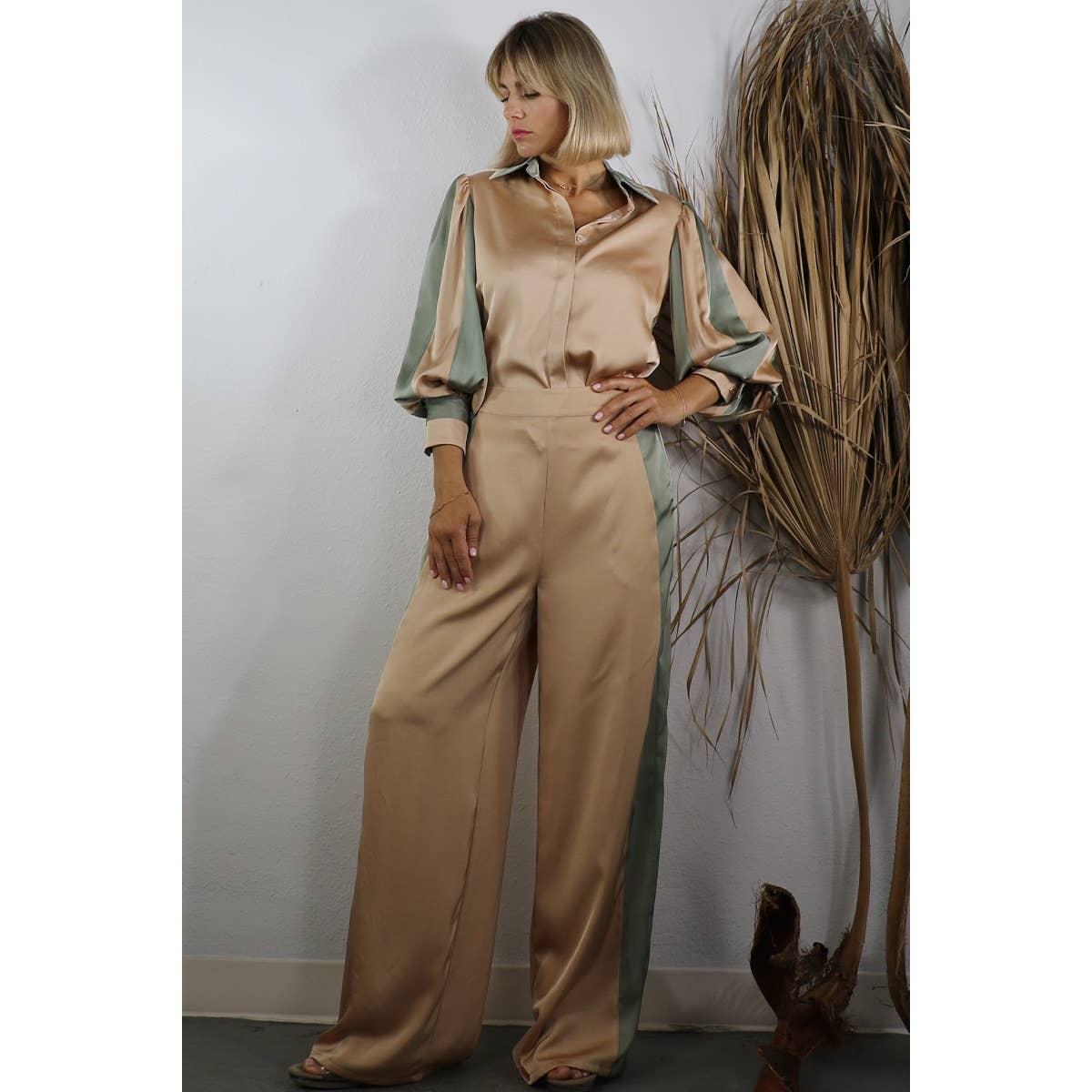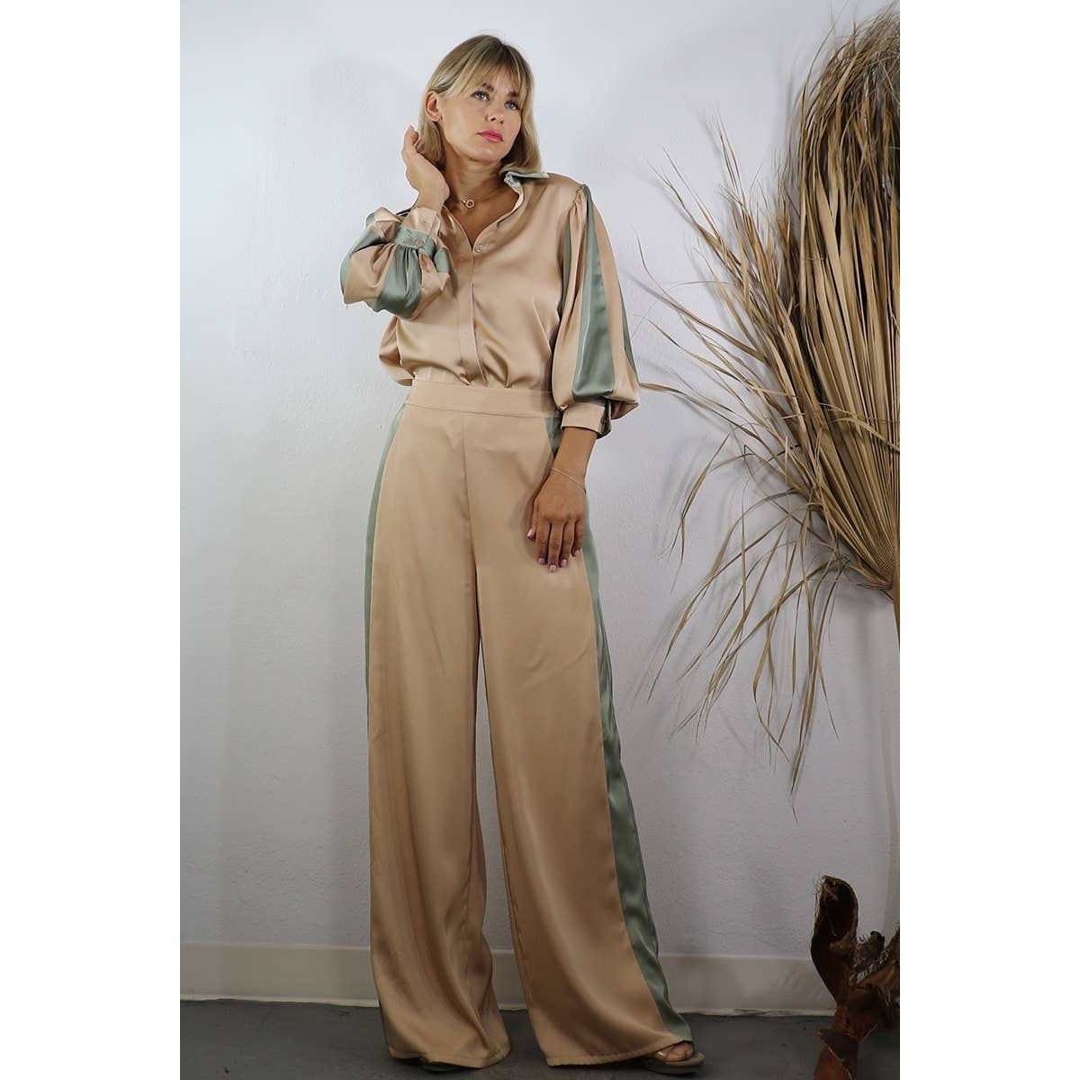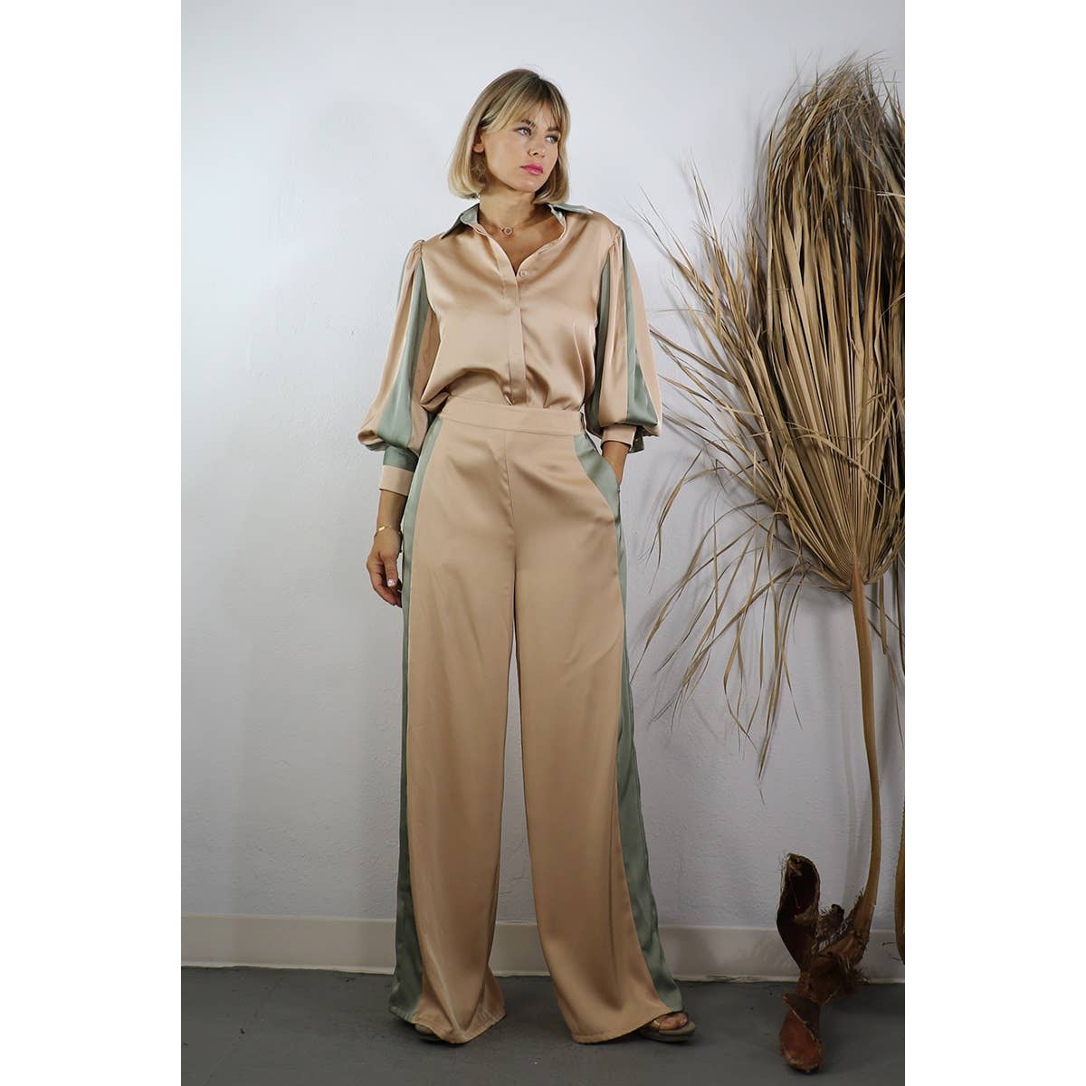 SATIN COLOR BLOCK BLOUSE AND PANTS SET