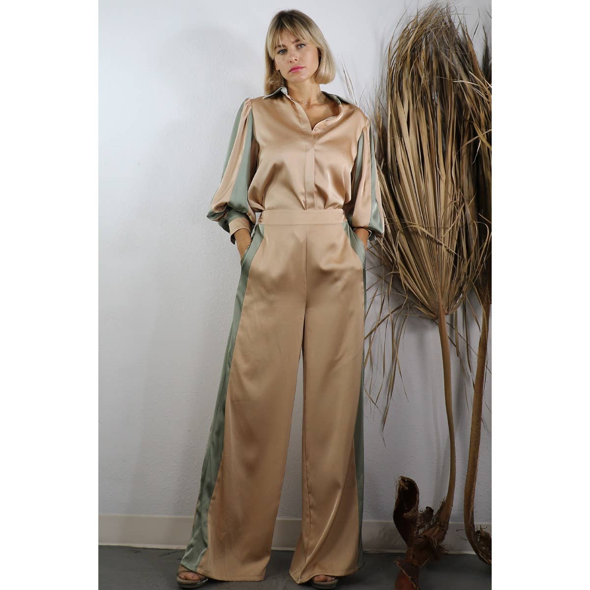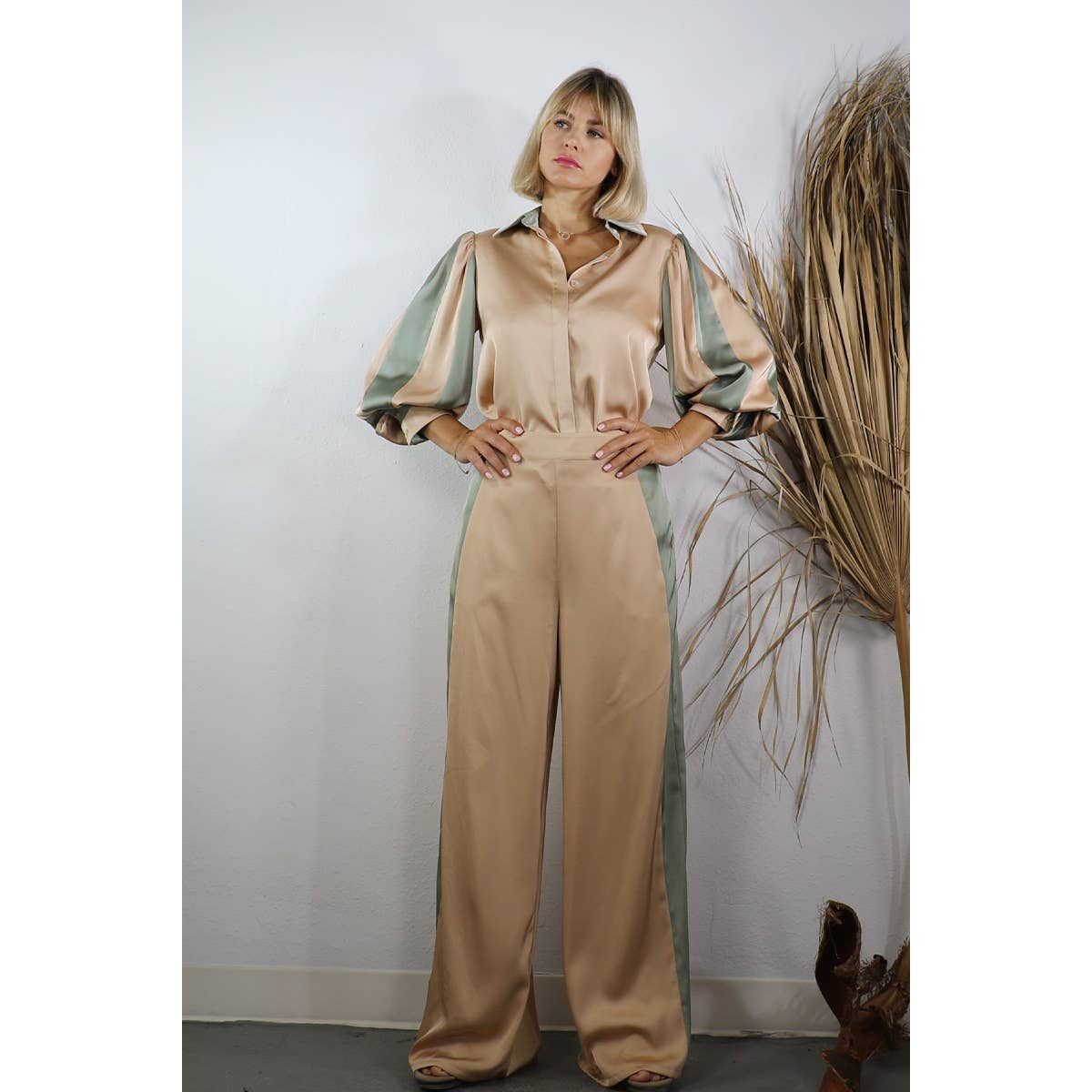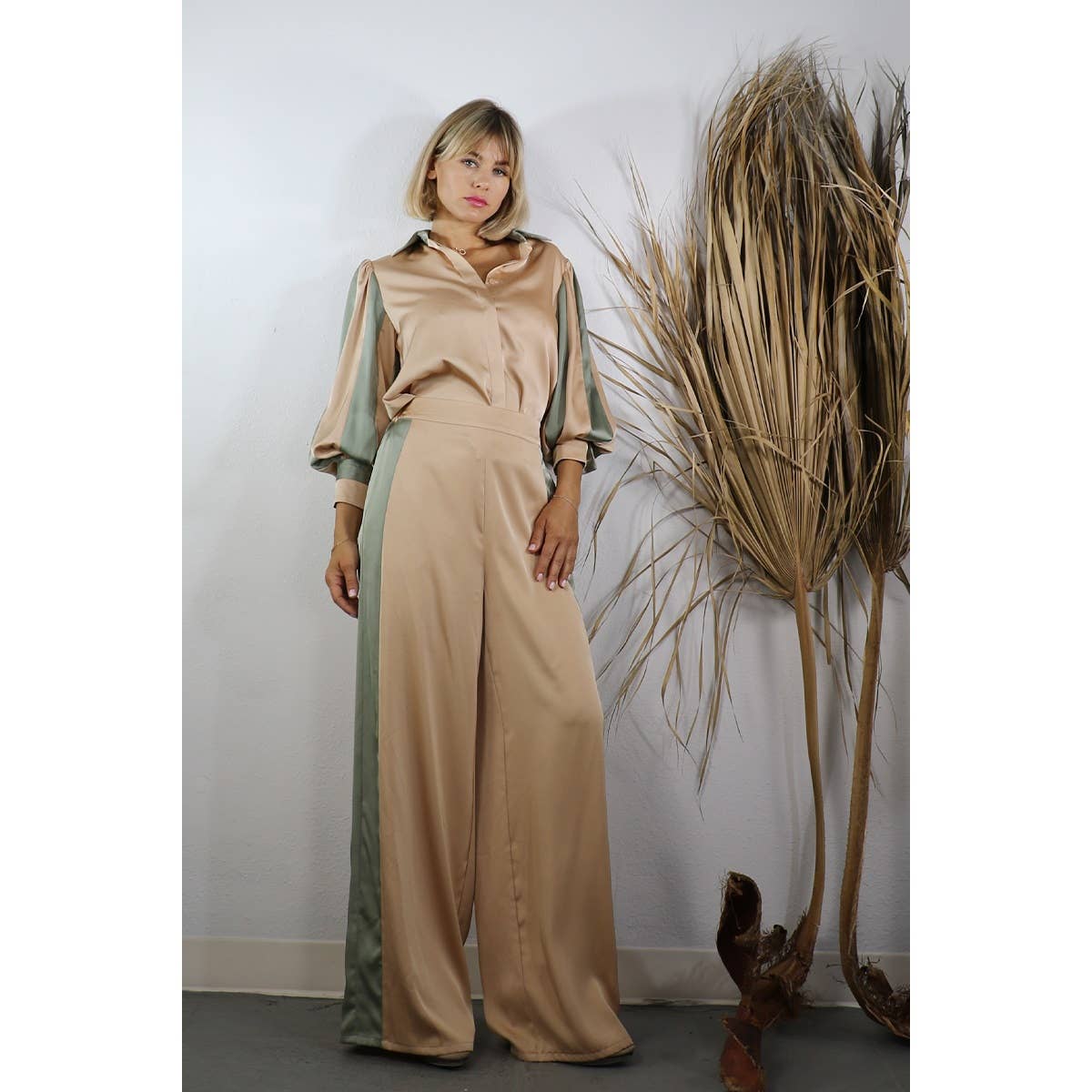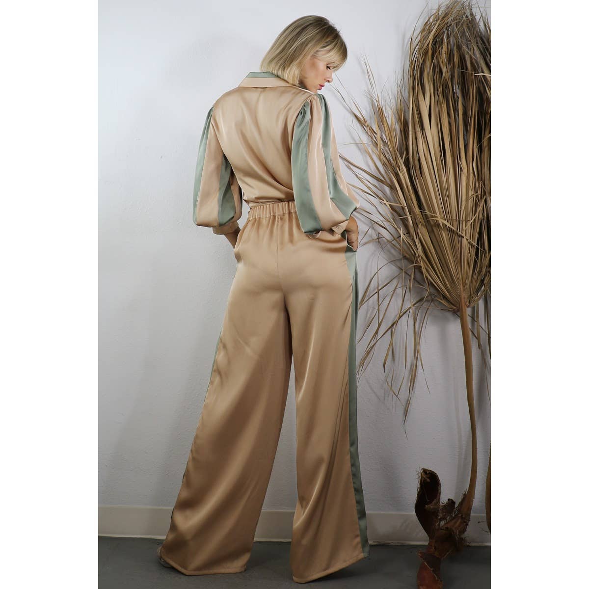 SATIN COLOR BLOCK BLOUSE AND PANTS SET