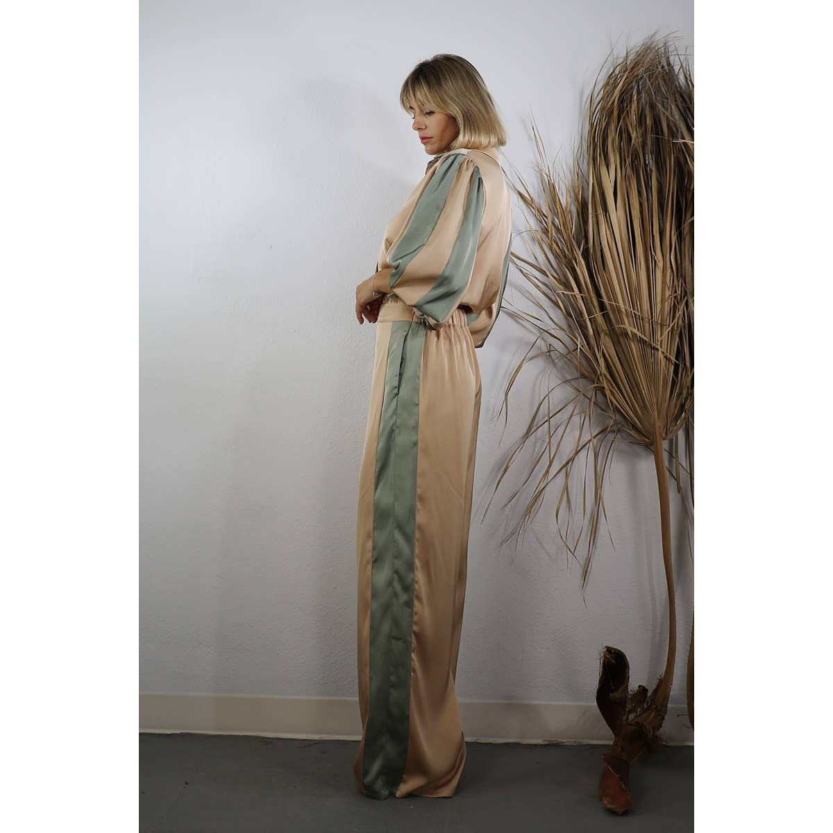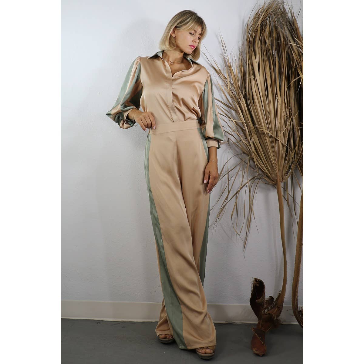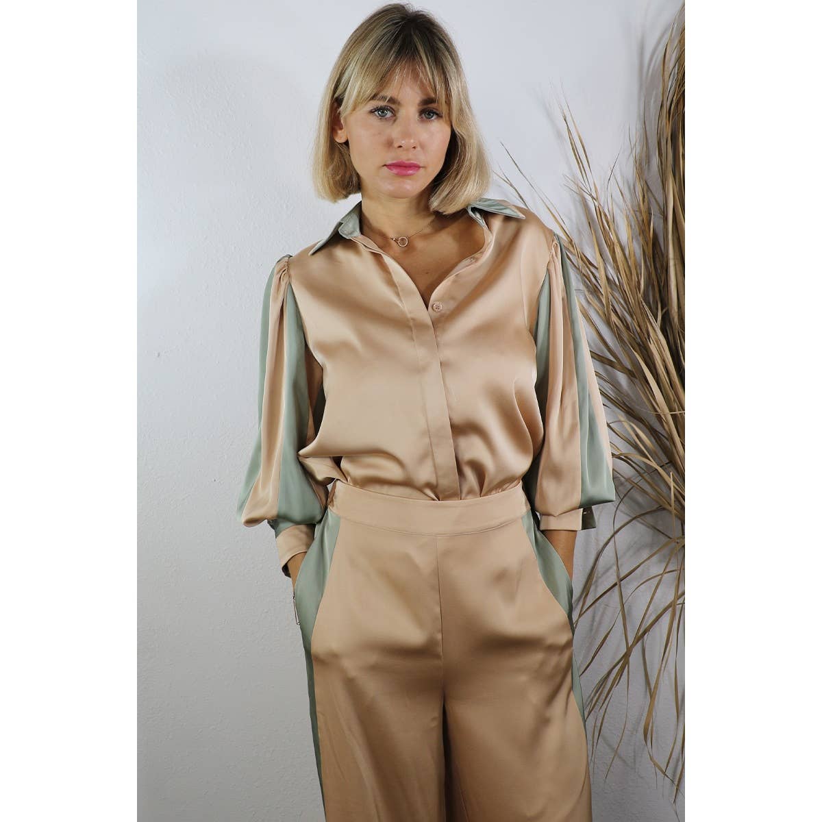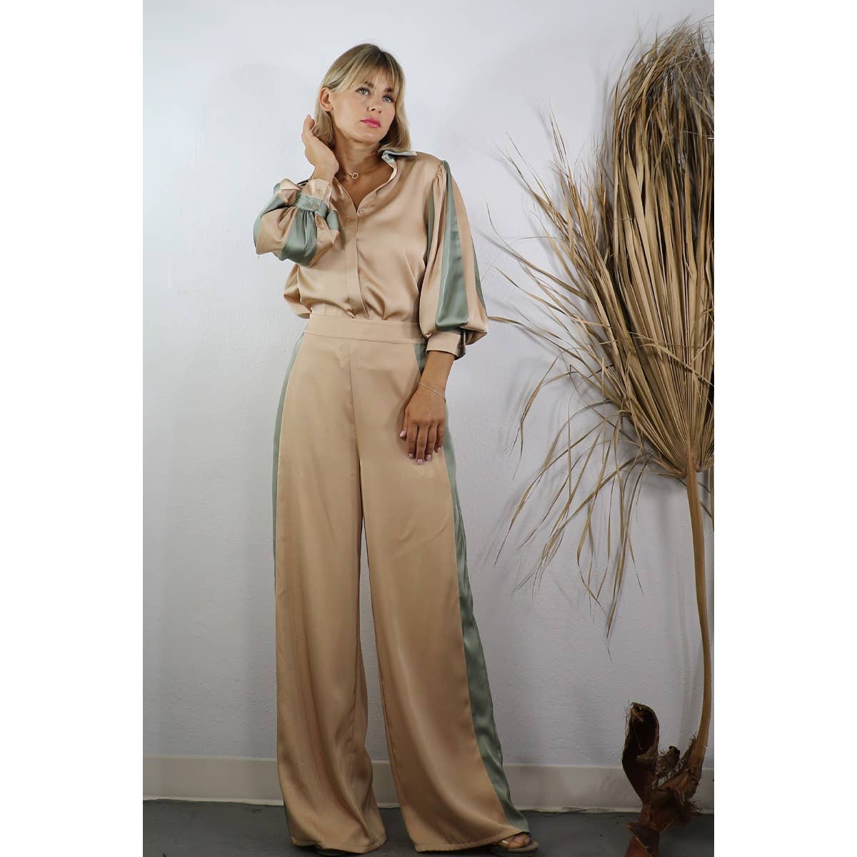 SATIN COLOR BLOCK BLOUSE AND PANTS SET