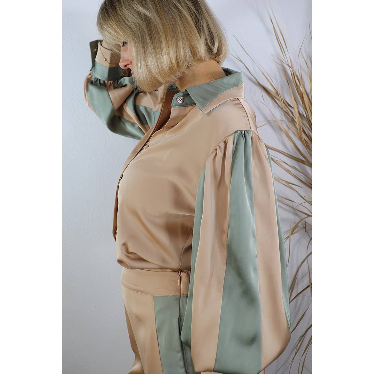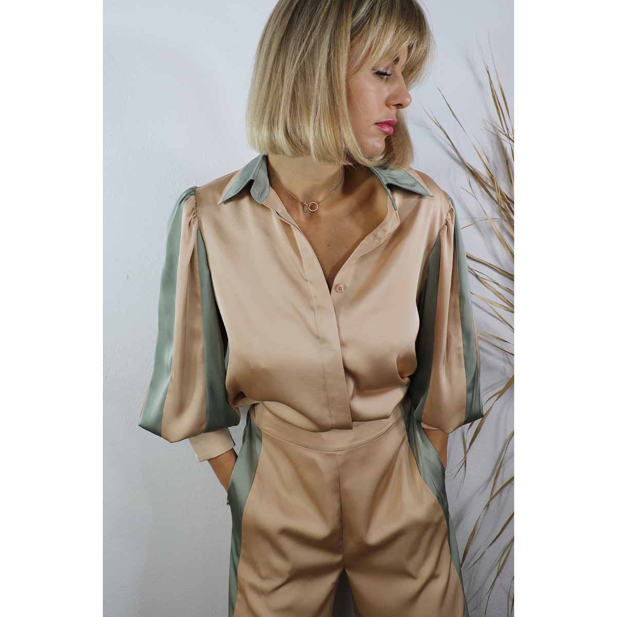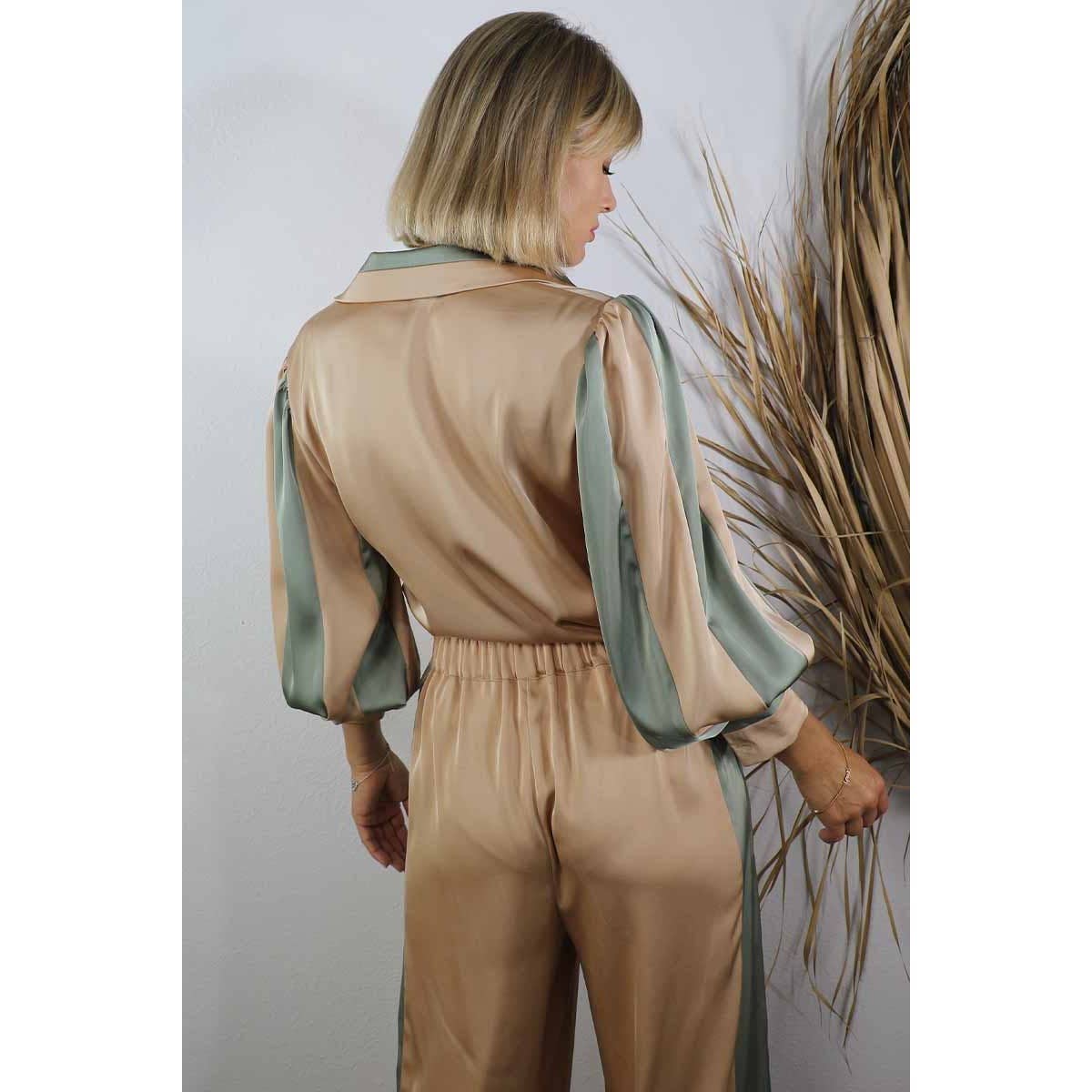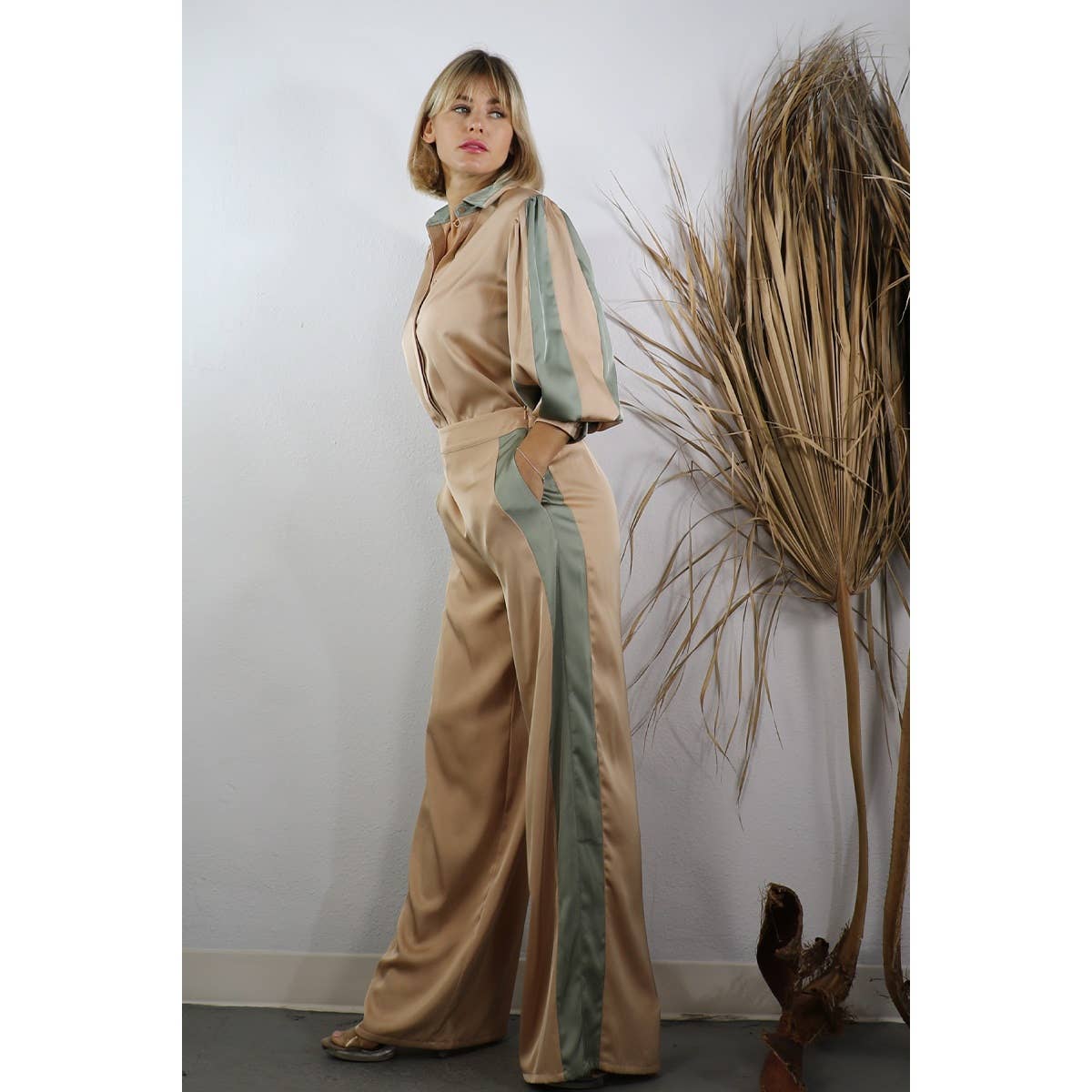 SATIN COLOR BLOCK BLOUSE AND PANTS SET