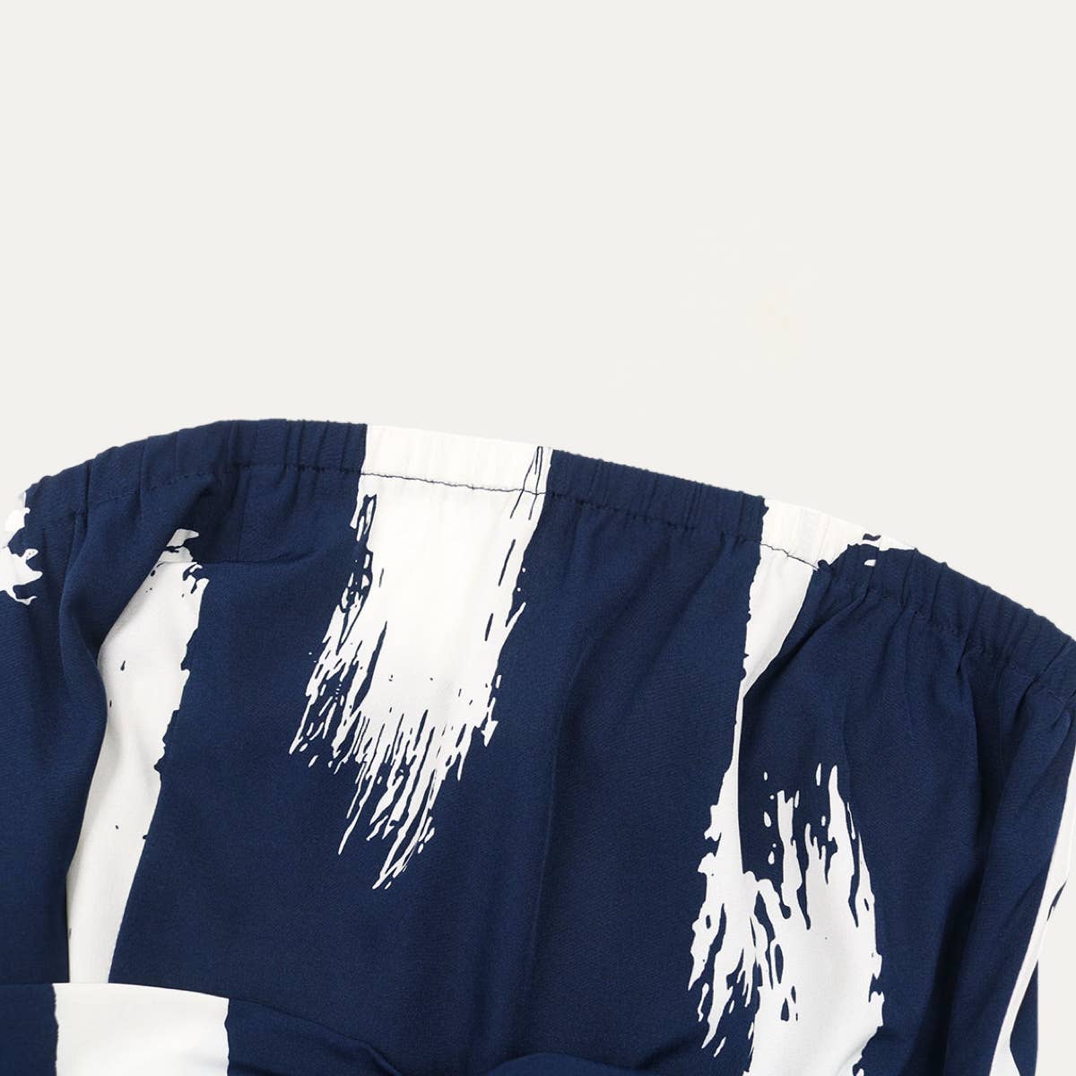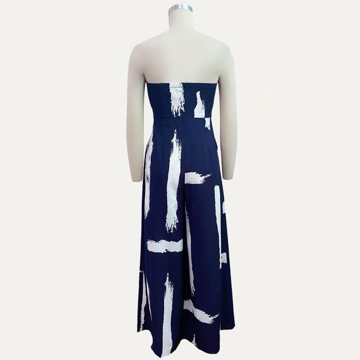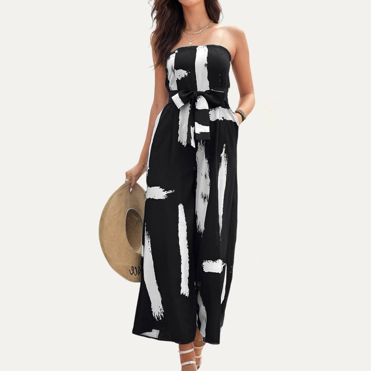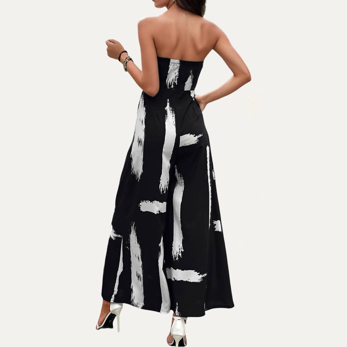 Unique Abstract Printed Off-the-Shoulder Wide-Leg Jumpsuit