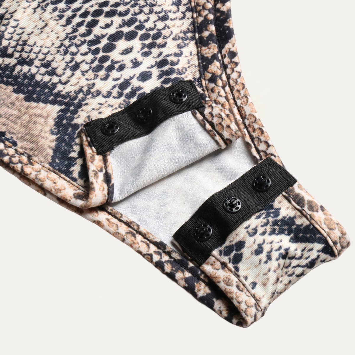 *FEATURES: Snake Print/Soft and Lightweight Woven Fabric/Mock Neckline/Sleeveless/Thong with Snaps Closure