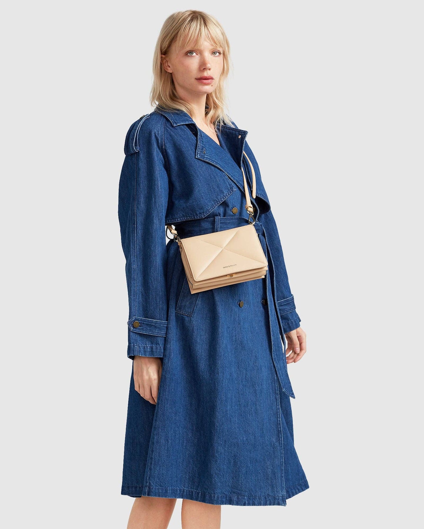 Sleek, dark denim provides a modern take on the classic trench coat. Giving the Wild Skies Denim Trench a decidedly powerful look.